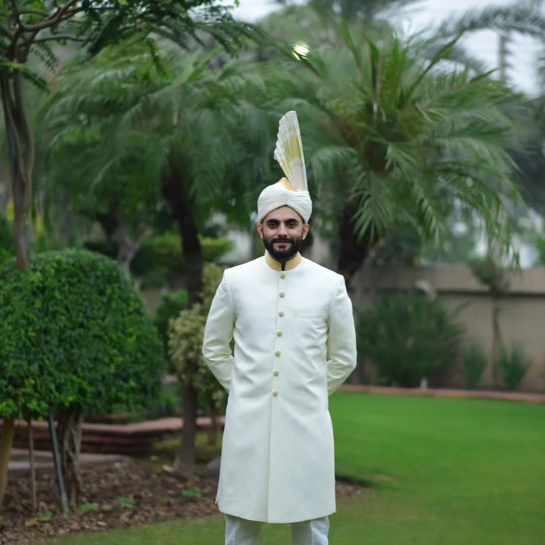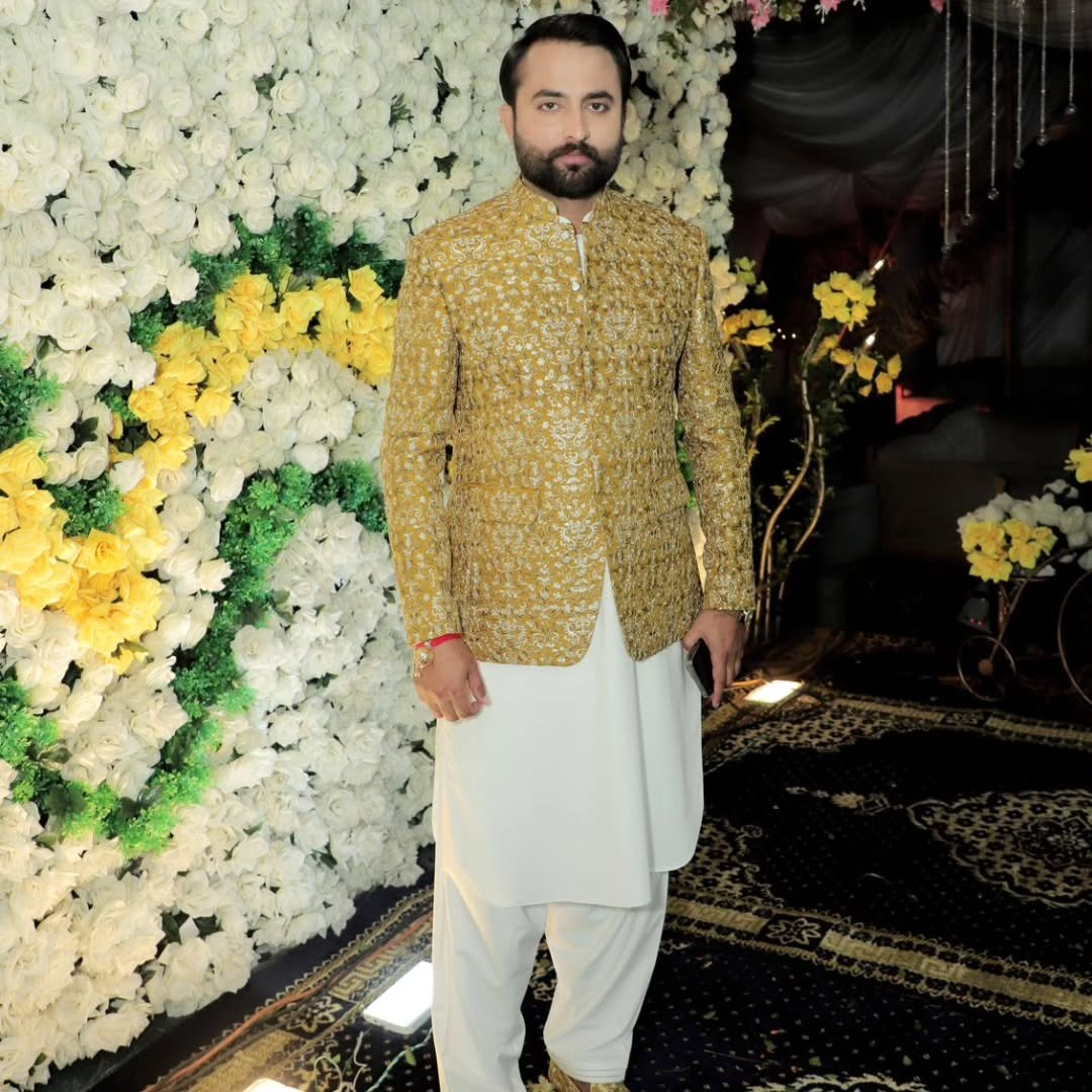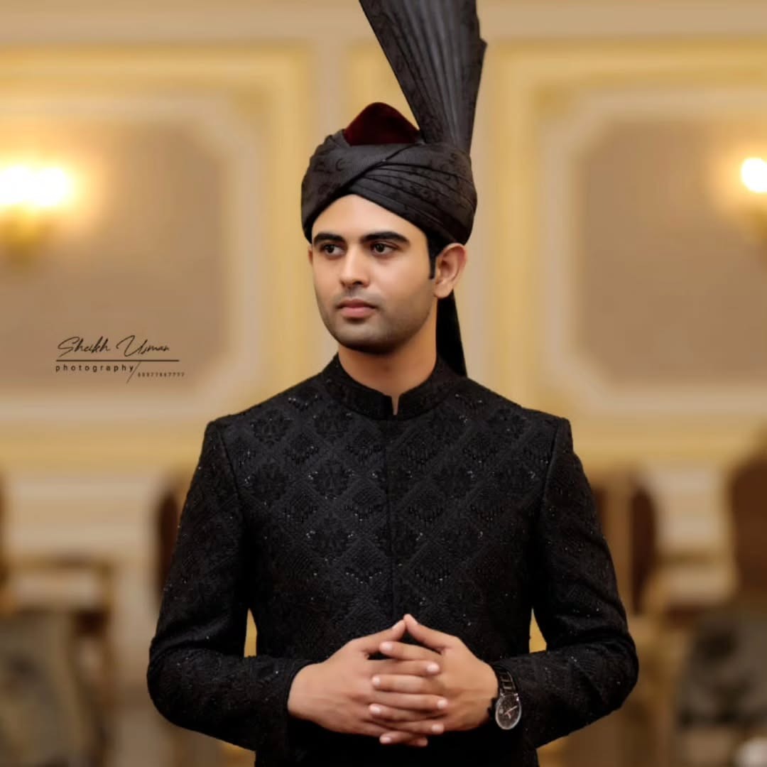 Our esteemed client, Dr. Mustajab, made his big day even more memorable with his elegant and graceful look in our customized outfit. Every aspect of his attire was carefully designed to reflect sophistication, confidence, and timeless charm. From selecting the finest fabric to achieving a flawless tailored fit, each step showcased our dedication to craftsmanship and quality. The subtle detailing, refined texture, and classic silhouette added depth and personality to his overall look.