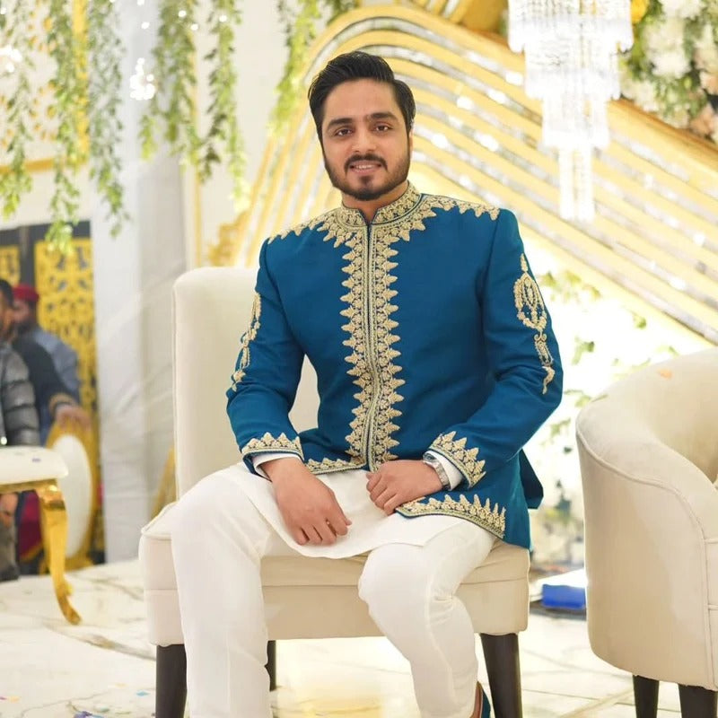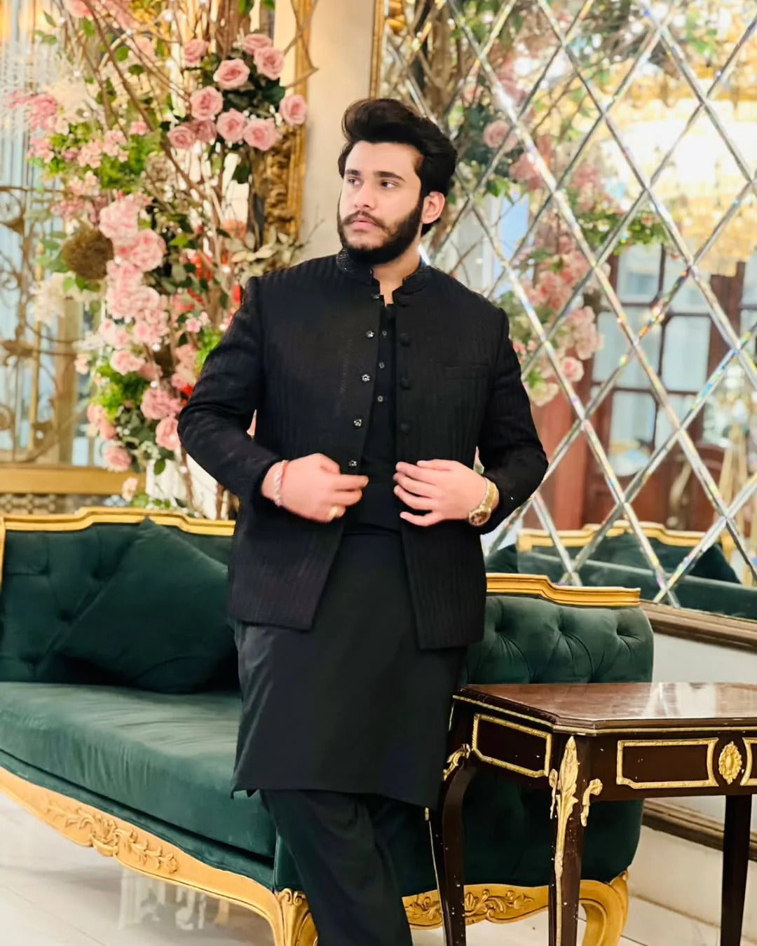 We are delighted to share that our happy client, Mr. Shoaib Tanveer, looked absolutely graceful and sophisticated in his customized outfit on his special day. Every detail of his attire from the selection of high-quality fabric to the precision of stitching was crafted to perfection, ensuring a flawless fit and timeless appeal. The customized design beautifully reflected his personality, combining modern elegance with classic charm. Our skilled designers at ABITO MEN worked closely with him to create a look that was not only stylish but also comfortable and confident.